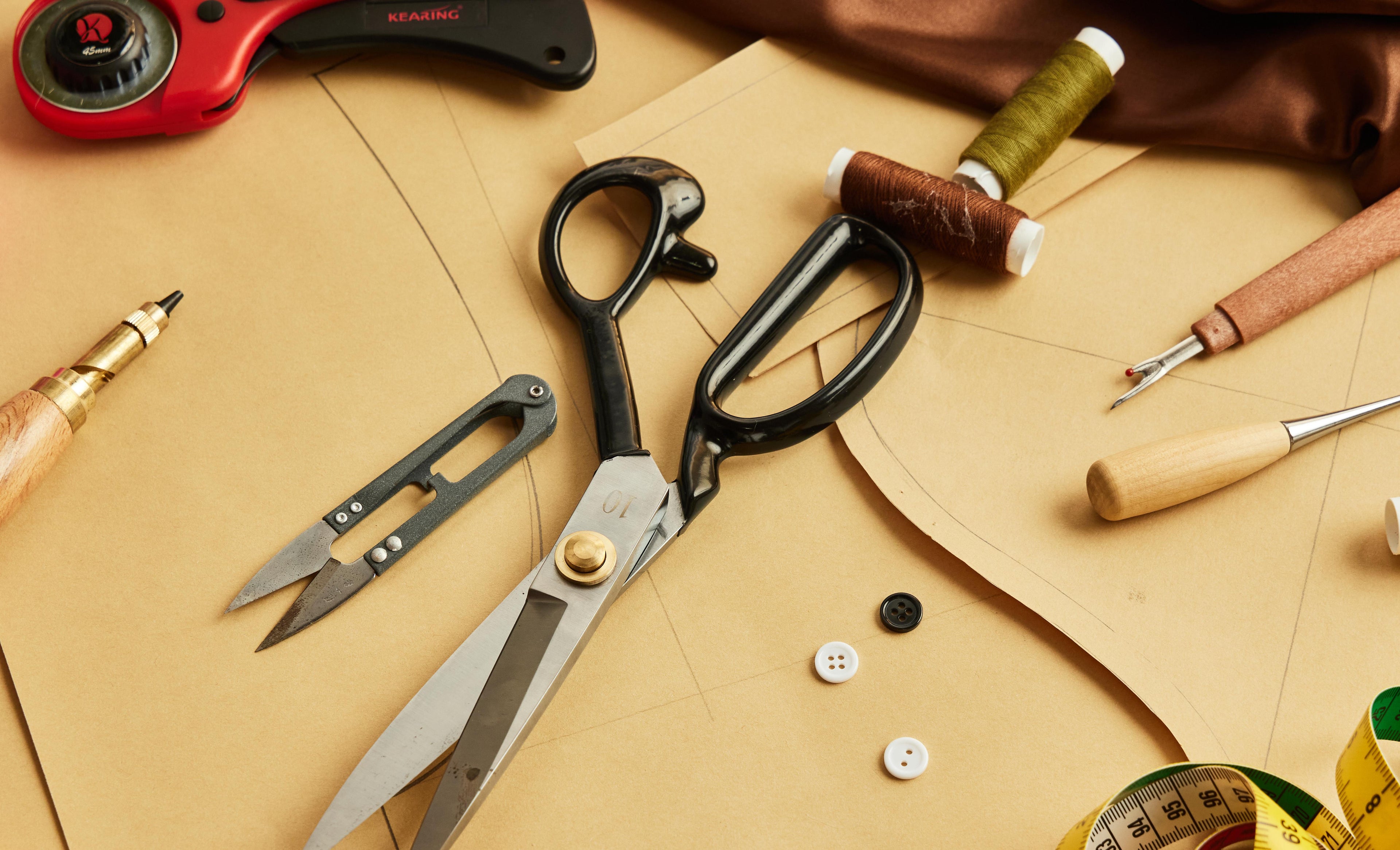 — Sewing Tools: Tailor scissors, tracing wheels, pattern notchers, tailor awls, seam rippers