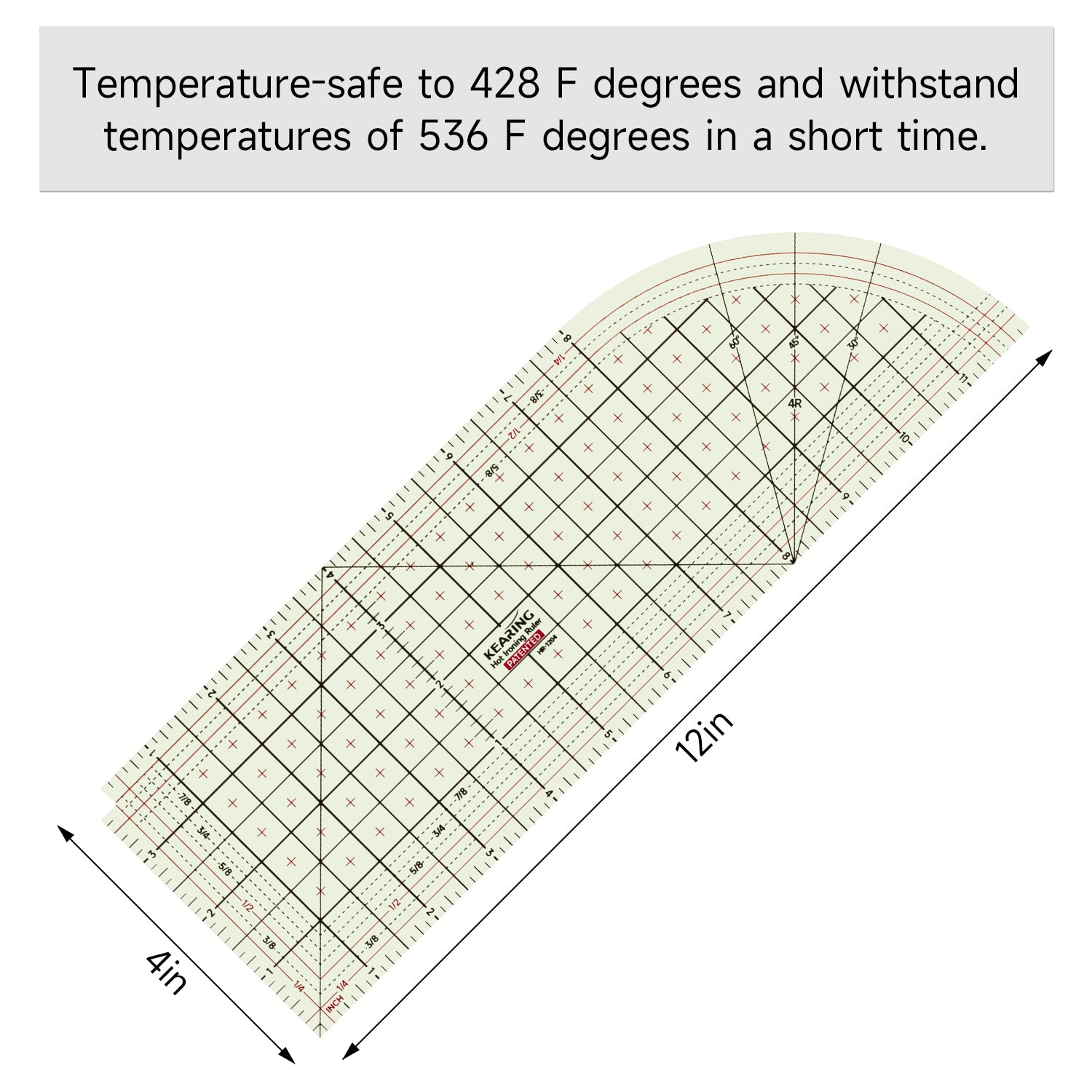 The Kearing 12” × 4” Hot Ironing Ruler is a professional sewing tool designed for precision in hemming, pressing, and measuring. Made from high-temperature-resistant resin plastic, it can withstand up to 220°C, making it safe to use with both dry and steam irons.