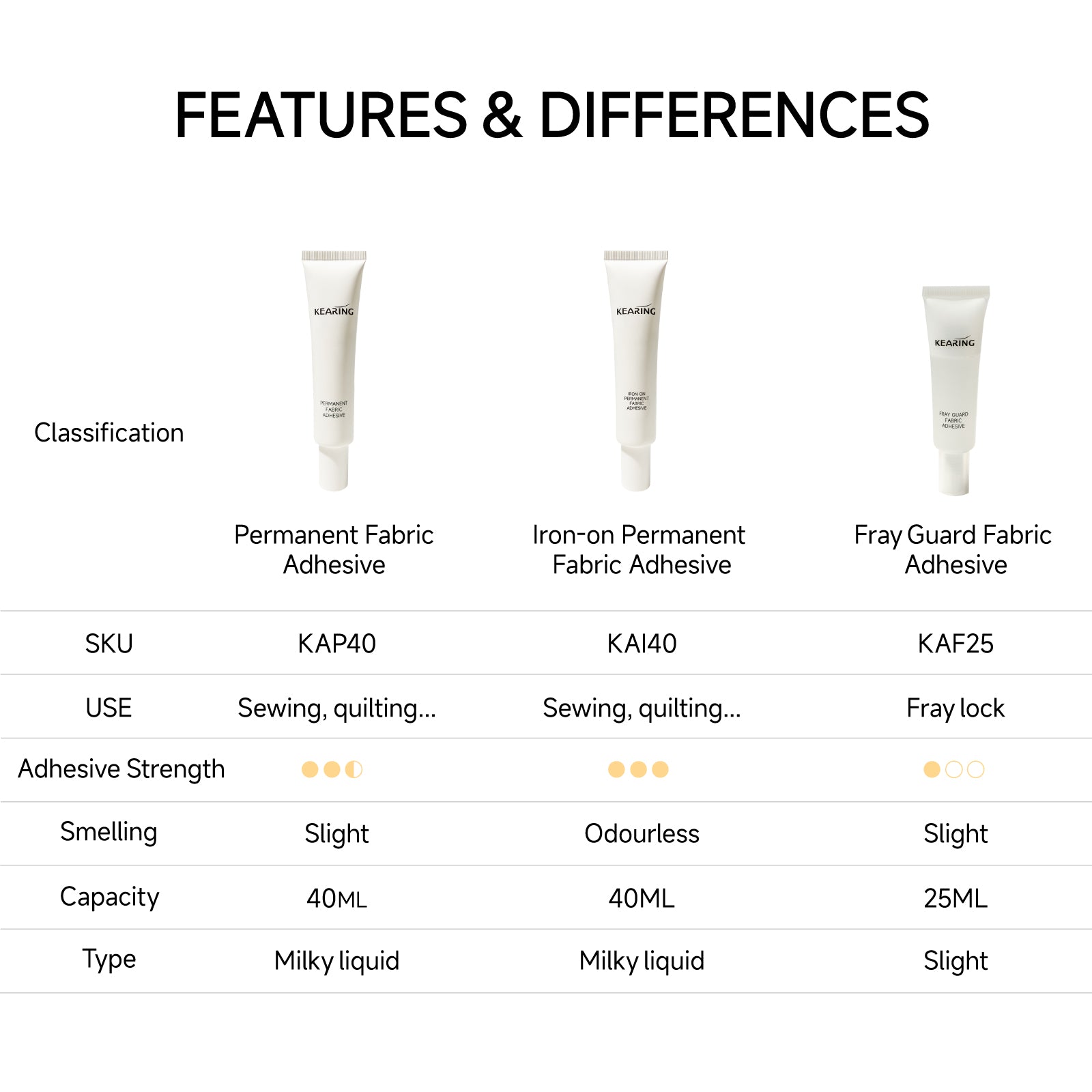 This fabric adhesive is perfect for everyday sewing, quilting, and craft projects that require a long-lasting, flexible bond. It supports washing, dry cleaning, and drying without compromising the integrity of the bond. Whether you're working on home décor, clothing, or craft projects, Kearing's Permanent Fabric Adhesive ensures a secure and lasting hold every time.